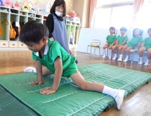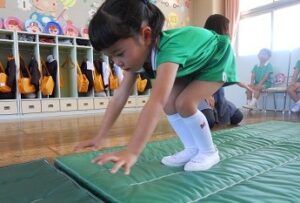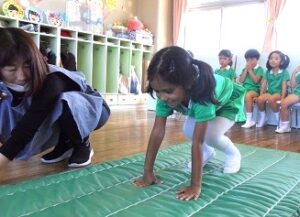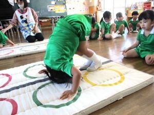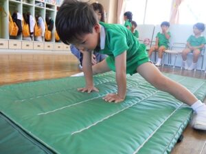 しっぽ取りゲームとマット運動で体をたくさん動かしました。