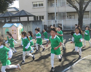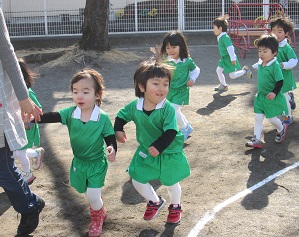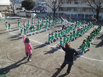 今日のスポーツクラブはまず全クラスで体操を行いみんなの大好きなマラソンをしました。