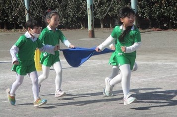 そこで全クラス合同でゲームを行い、みんなでスポーツクラブの思い出作りをしました。