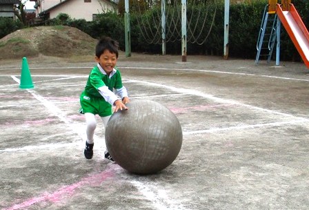 リレーと大玉転がしをして楽しみました。