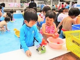 明日もお天気次第でプール遊びを行います。
