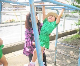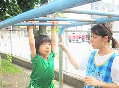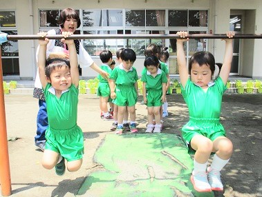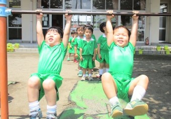 その後花組さんは鉄棒でぶら下がりの練習です。