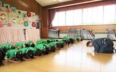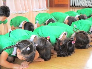 正座が苦手な月組さん。今日は正座でご挨拶。