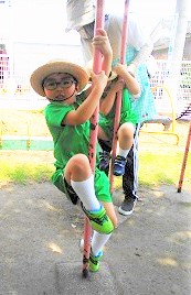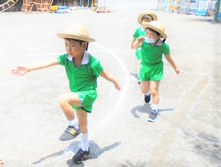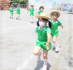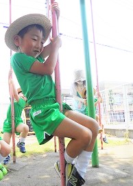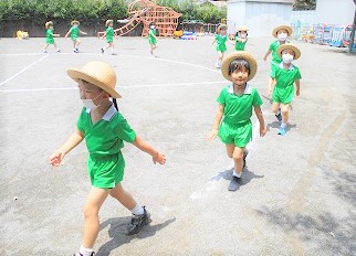 行進や、園庭の遊具を使って体を少しずつ動かしていこうと思います。