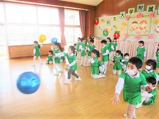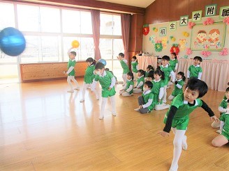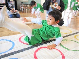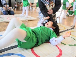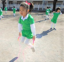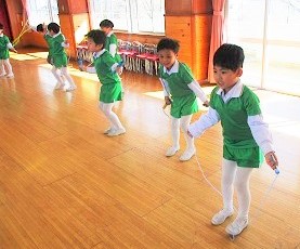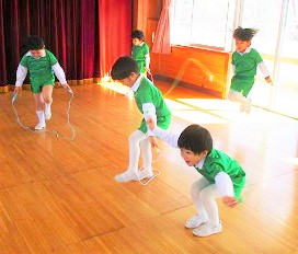 はな組さんは、跳び箱やマット、そして長縄跳びの練習です。