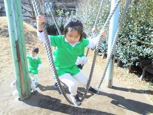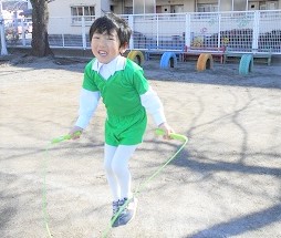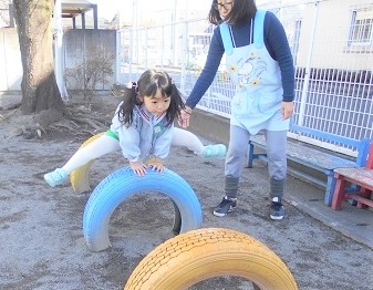 ゆき組さんは、なわとび練習とタイヤ跳び箱や綱渡りの練習です。