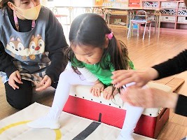お豆を拾うだけですが、子どもたちにとっては楽しい宝物集めのようで、