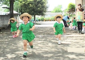 園庭でサーキットを行った後、徒競走の練習。