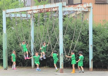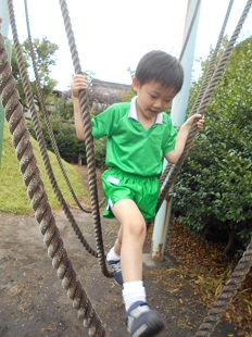 綱渡りをみんなで一生懸命練習中です。
