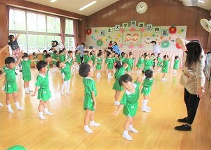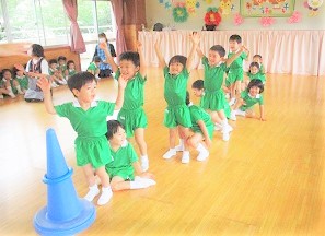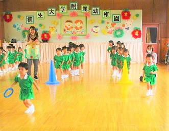 園庭でサーキットを行った後、