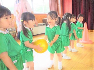 みんなでリレー・ボール渡し・マットをして楽しみました。