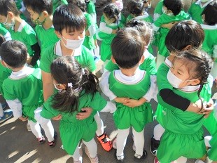 月組さんと雪組さんは、つぼみ組さんと花組さんのお友達と手をつなぎました。