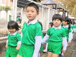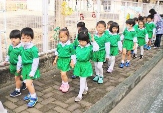 大きなクラスのお友達は、小さなクラスを誘導する責任感と、