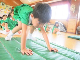 今日は久しぶりに雨があがり、園庭で体操をする事ができました。
