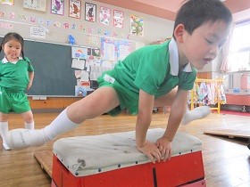 その後に各クラス教室で身体を動かしスポーツを楽しみました。