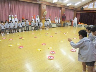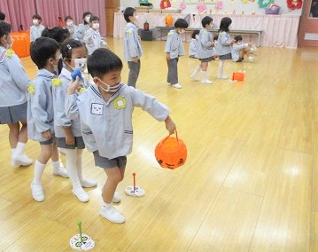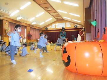 雪組さん、月組さんはお遊戯室でハロウィンゲームを楽しみました。