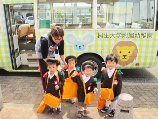 今日からつぼみ組さん、花組さんがバス乗降の仲間入りをしました!