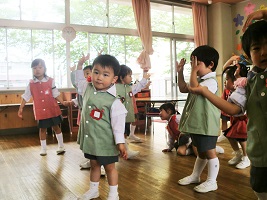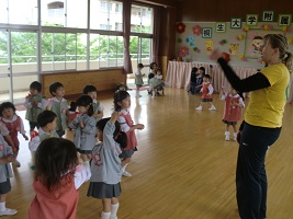 今日は2歳児つぼみぐみ、3歳児花組さんの英会話クラブ