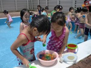 お天気の様子でプール遊びを行いますので、