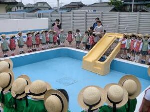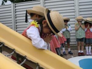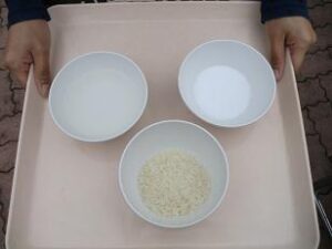 お酒・お米・お塩でお清めをし、みんなでケガのないように