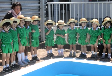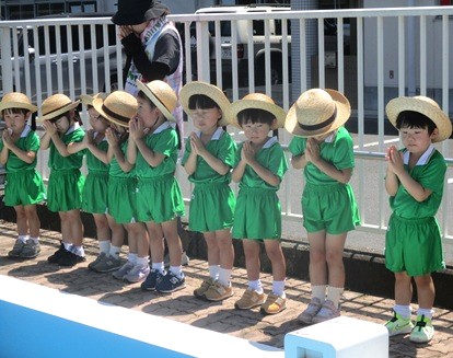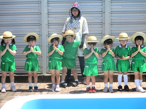 子ども達みんなでお祈りして、プールのお約束確認もしました。