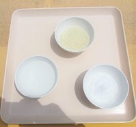 米・塩・酒 をプールの四隅に置きました。