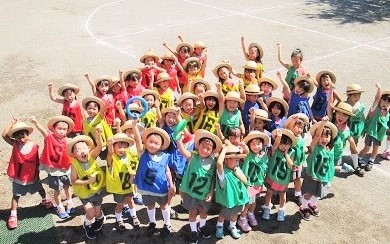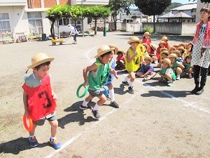 運動会で年中・年長クラス合同で色別リレーを行います。