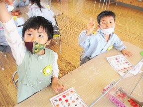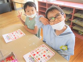ビンゴになるかならないかは、自分が選んで貼った絵の順できまります♪