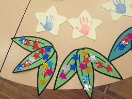 この笹の葉に つぼみ組さんらしい飾りがプラスされて