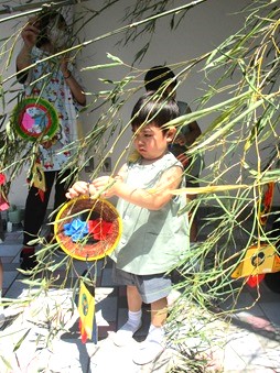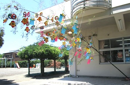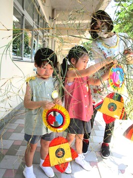 大きな笹にみんなで短冊を飾りました。