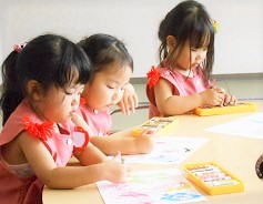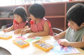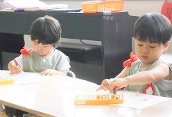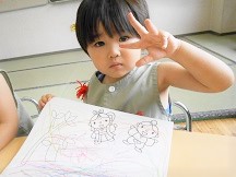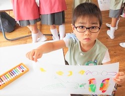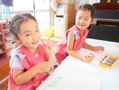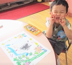 つぼみ組さん・はな組さんは今日、お絵かきをしました。