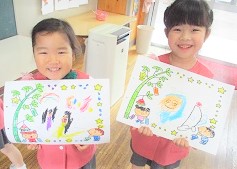 7月7日(火)に飾った七夕飾りの思い出画を描きました。