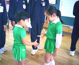 ゲームが終わった後は、みんなで園庭に出て戸外遊びです 。