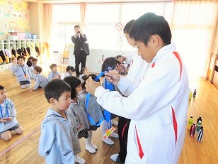 桐生大学附属中学校の生徒さんたちが幼稚園に遊びに来てくれました。