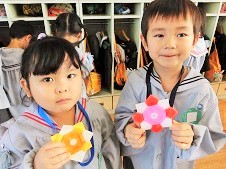 桐生大学附属中学校のお兄さん、お姉さんが作ってくれた折り紙やプレゼント、大切にしますね!
