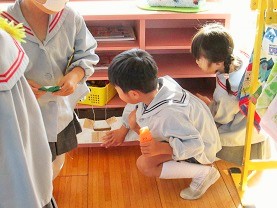 中学生のお兄さんお姉さんと一緒に『絵合わせゲーム』をして遊びました。