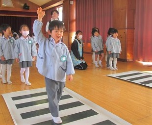 みんなで横断歩道を歩く練習もしました。