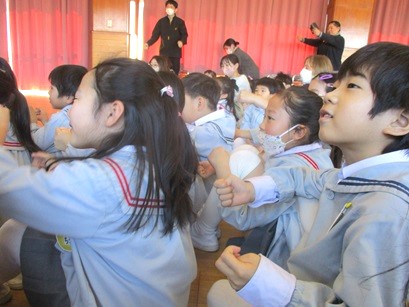 子どもたちは、ドナルドさんの楽しいお話しに引き込まれながら