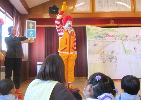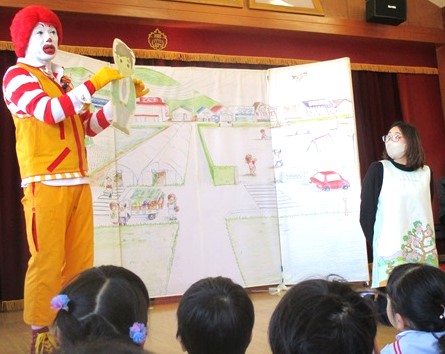 今回は、マクドナルドさんをお招きして交通安全教室を開催することになりました!