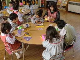 つきぐみさんも つぼみぐみさんも 製作をニコニコ自信いっぱいに作っています。