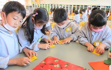 覚えながら折り紙を折りました。