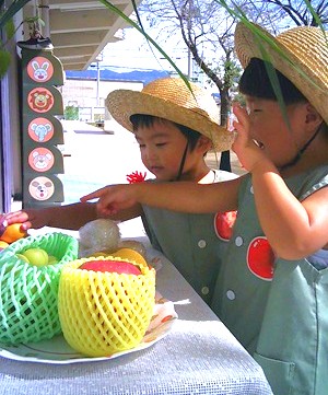 おいしそうな果物やお団子を目の前に・・・
