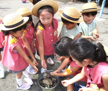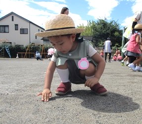 運動会間近ということもあり、先週の金曜日に子供たちと園庭の石拾いを行いました。