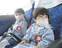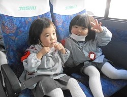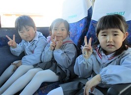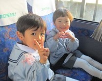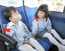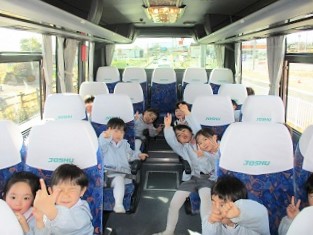 大型バスに乗ったつぼみ組さん、はな組さん、