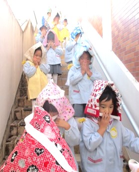 いつもは午前中に行う避難訓練も、今日は午後に行いました。