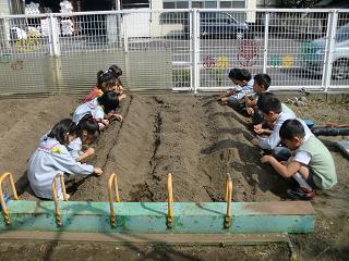 ≪黙々と種を植えるつきぐみさん≫