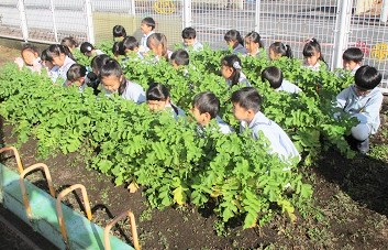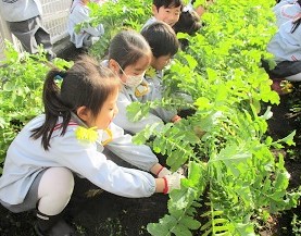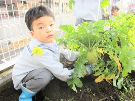 種まきした時の月組さんは夏の遊び着でしたが、もう12月。