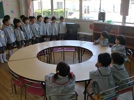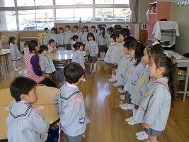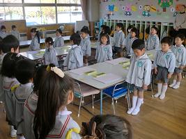 堂々と 年長クラス月組が対面式での挨拶をし、