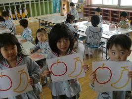 赤・黄・青・緑の丸くて小さなシールを 絵に貼っていきます。