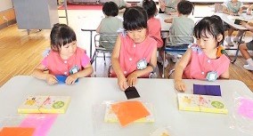 クジラとヨットで 製作帳に夏の海を完成させます♪